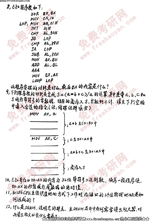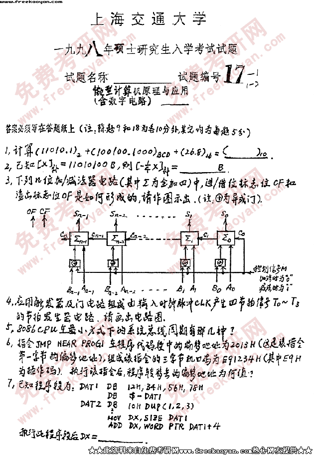 上海交通大学1998年考研真题-微型计算机原理与应用
