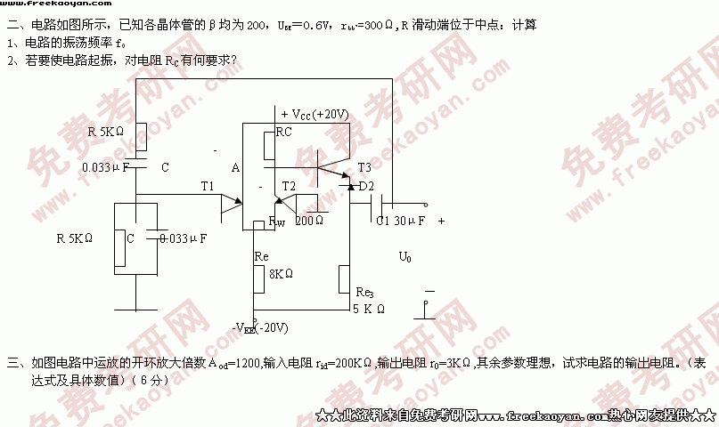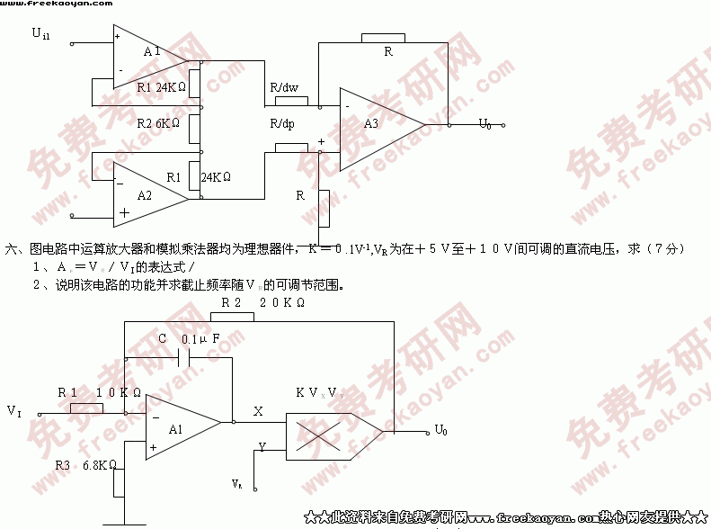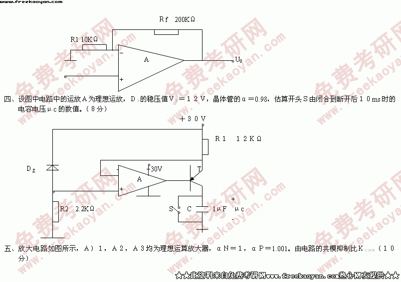 专业课考研经验 本站小编 FreeKaoyan 2018-01-22上海交通大学2000年考研真题-电子电路电子电路(模拟电子技术与数字电子技术)
