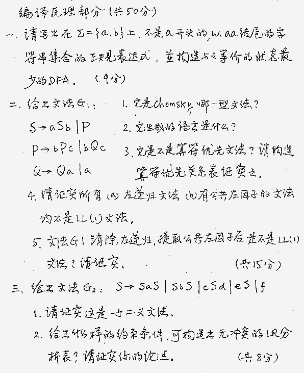 专业课考研经验 本站小编 FreeKaoyan 2018-01-22编译部分: 1、 请构造与正规式R=(a*/b*)b(ba)*等价的状态最少的DFA. (9分) 2、 表达式-a+b*c+d+(e*f)/d*e,如果优先级由高到低依次为-.+.*./,且均为左结合,3、 请写出其后缀式。(5分) 4、 文法G及相应的翻译方案,5、 如下 S bTc {print ...
