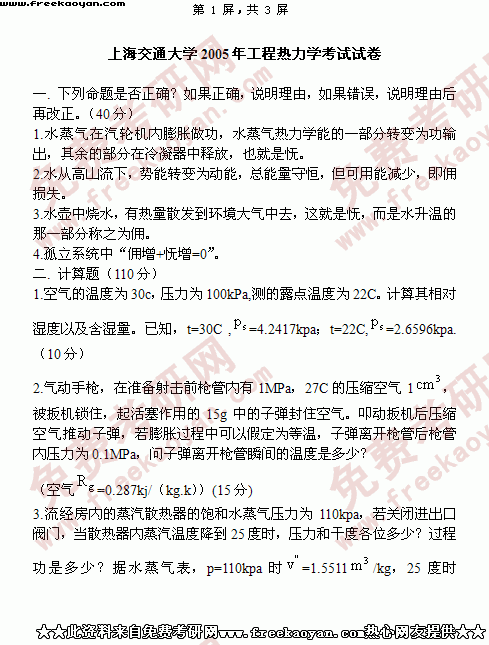 专业课考研经验 本站小编 FreeKaoyan 2018-01-22上海交通大学1999年考研真题-传热学