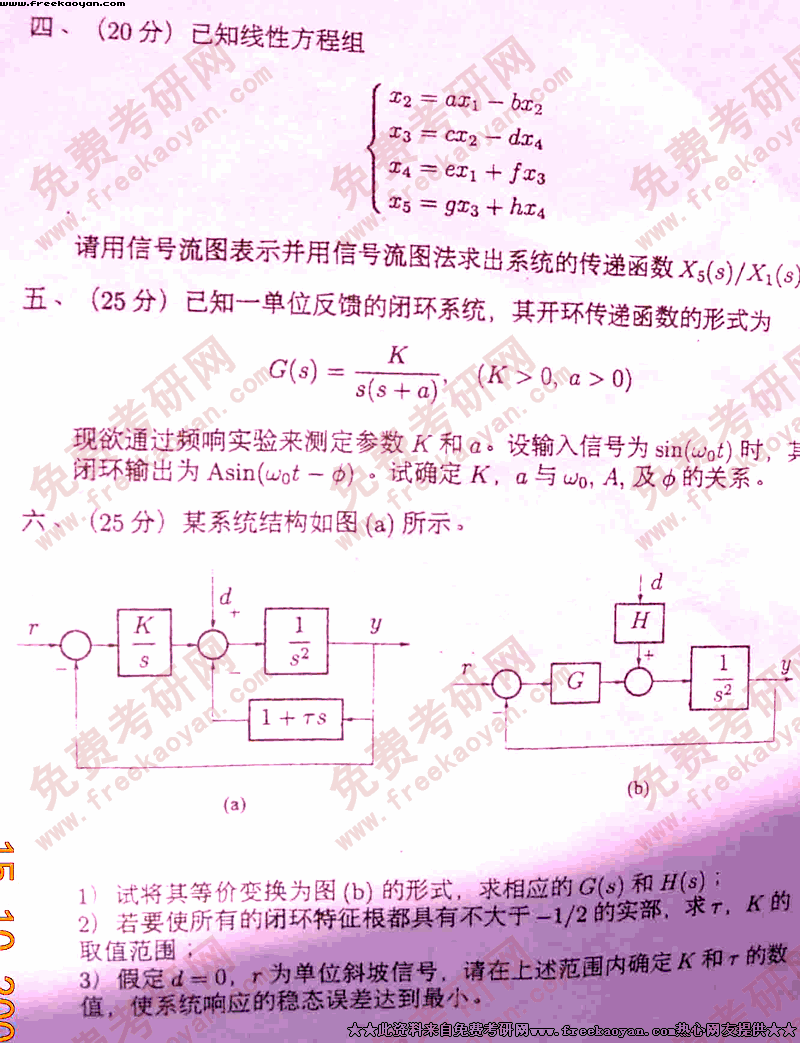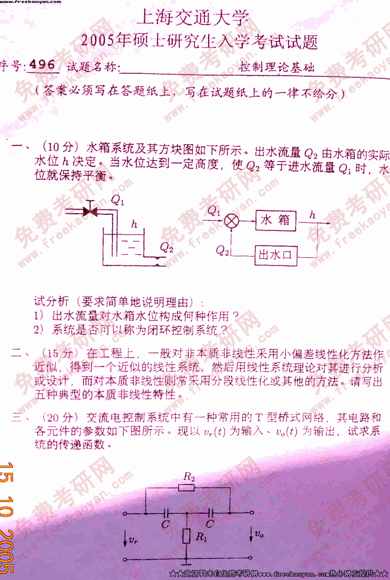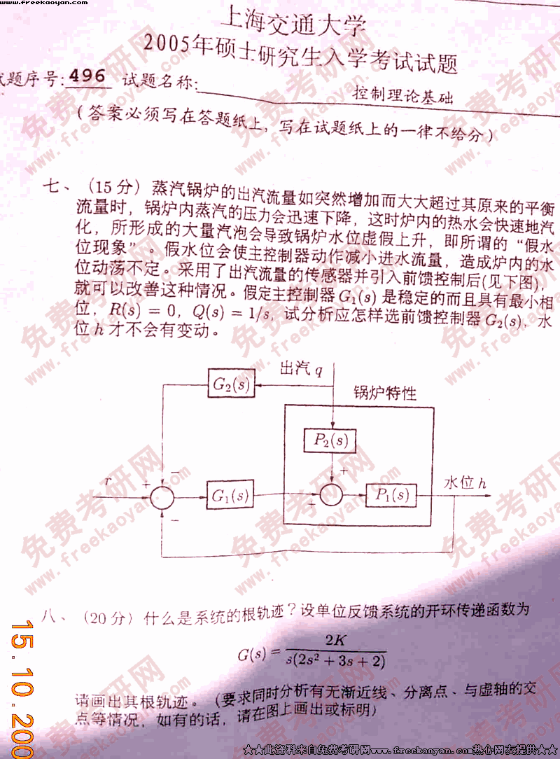 上海交通大学2005年考研真题-控制理论基础