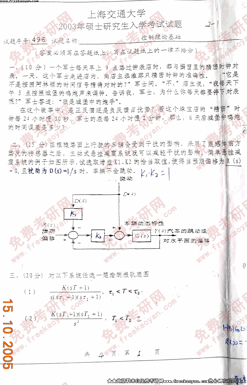 上海交通大学2005年考研真题-高分子化学和物理试卷
