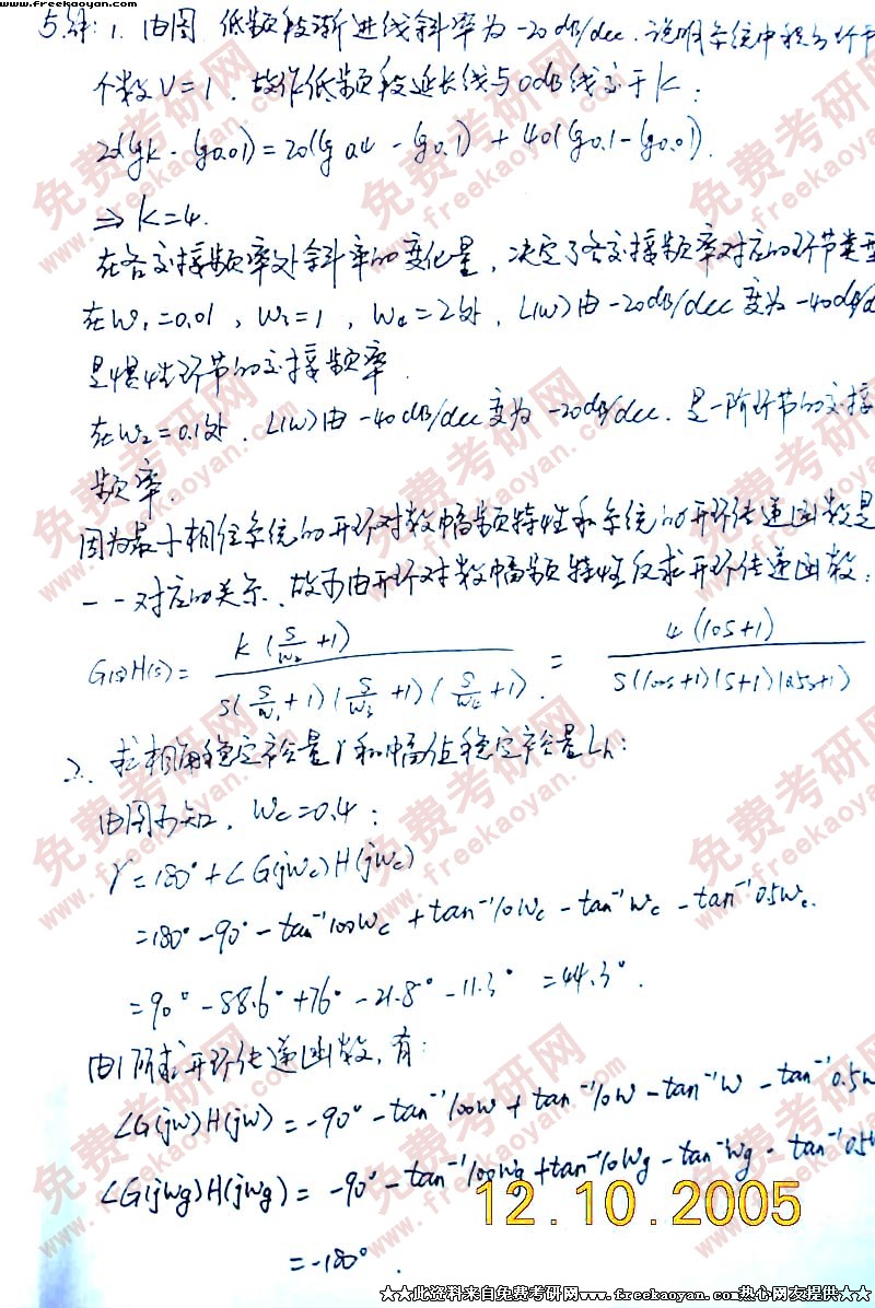 上海交通大学2002年考研真题-自动控制原理历年试题标准答案