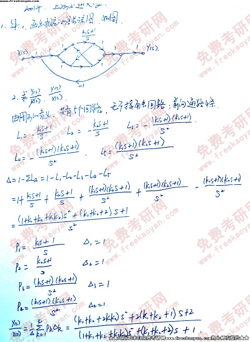 上海交通大学2001年考研真题-自动控制原理历年试题标准答案