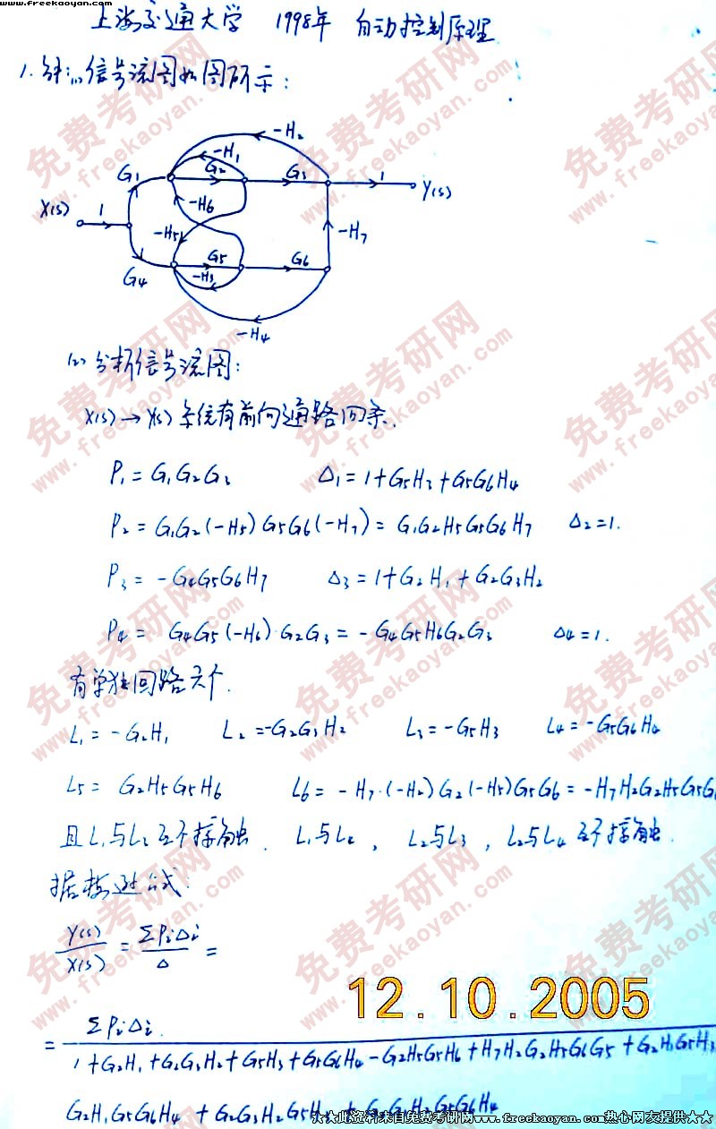 上海交通大学2005年考研真题-控制理论基础