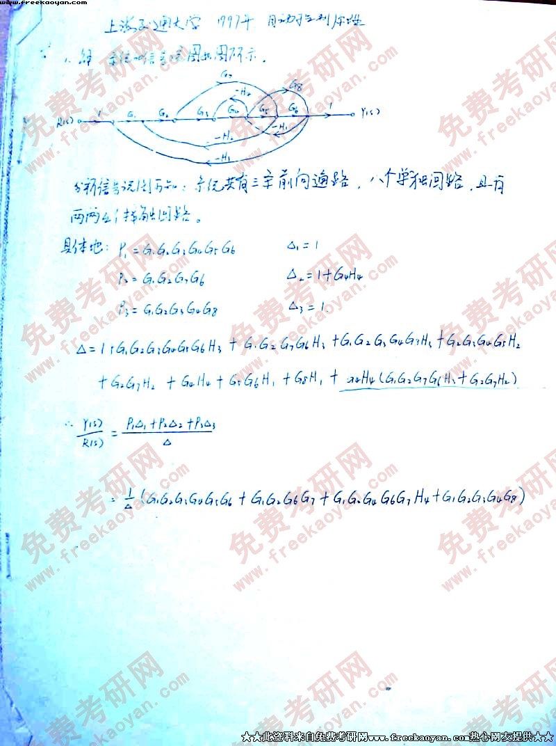 上海交通大学1997年考研真题-自动控制原理