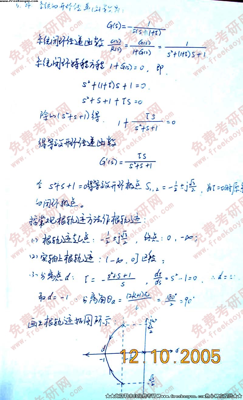 上海交通大学2005年考研真题-控制理论基础