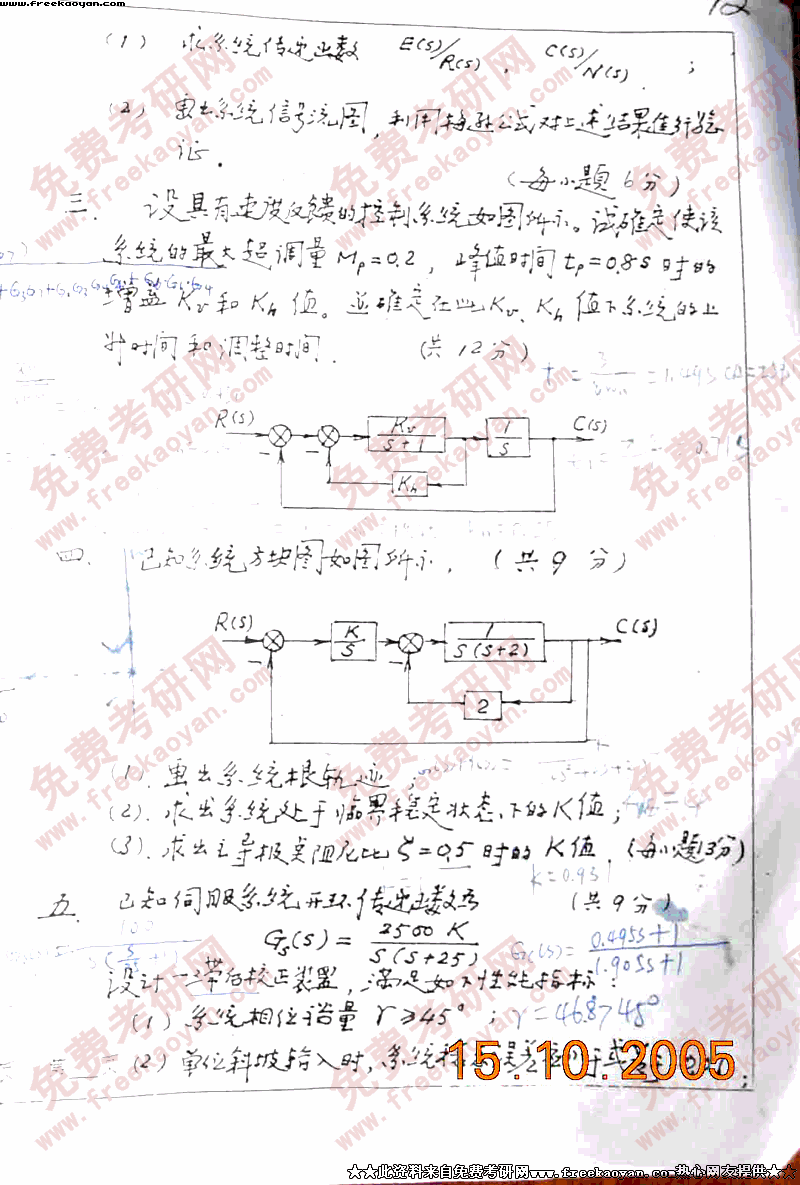 上海交通大学2005年考研真题-控制理论基础