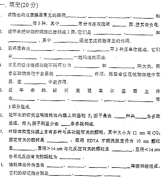 专业课考研经验 本站小编 FreeKaoyan 2018-01-22一 . 填空 (20) 1. 以磷脂酰胆碱为例 , 构成质膜与内膜的磷脂类是在膜的 ______ 面 , 由 _____,_____,_____ 等酶作用完成的 , 然后在 _____ 作用下 , 一部分转向 _____. 2. 具有信号肽编码的 mRNA 和核糖体大小亚单位结合后能附着在 ER 上 ...