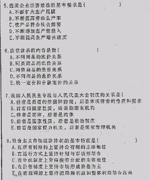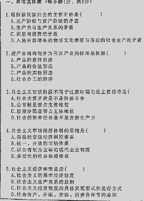同济大学1999年考研真题-政治(单)