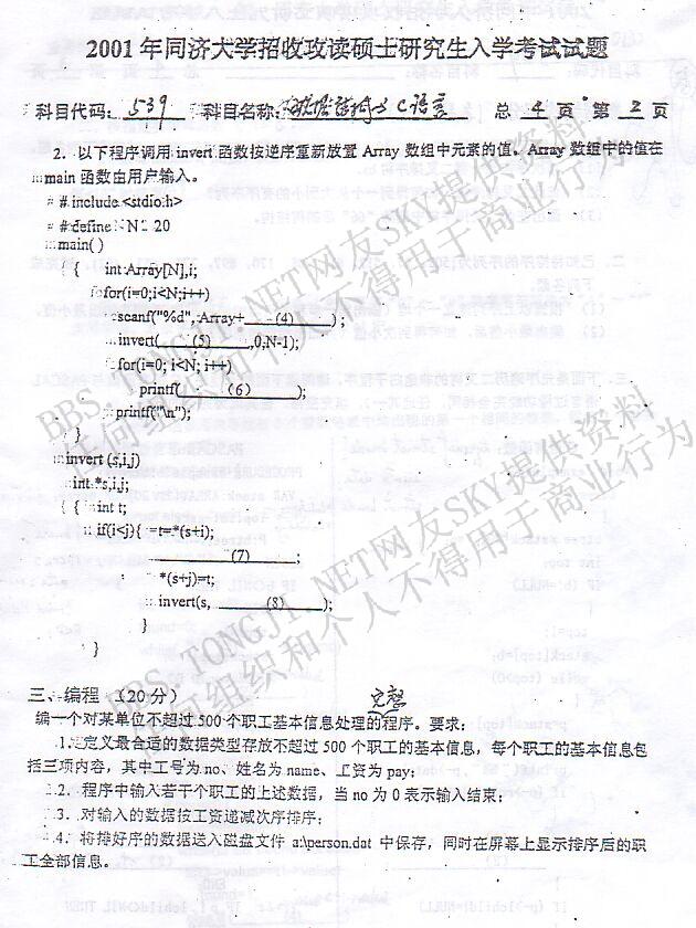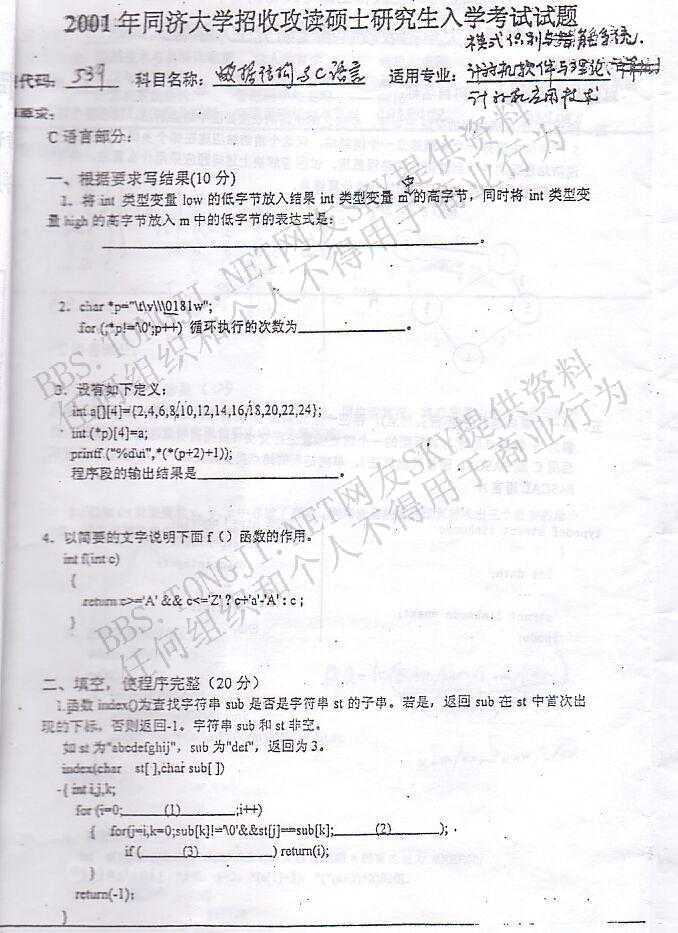 专业课考研经验 本站小编 FreeKaoyan 2018-01-22同济大学2002年考研真题-数据结构与c语言