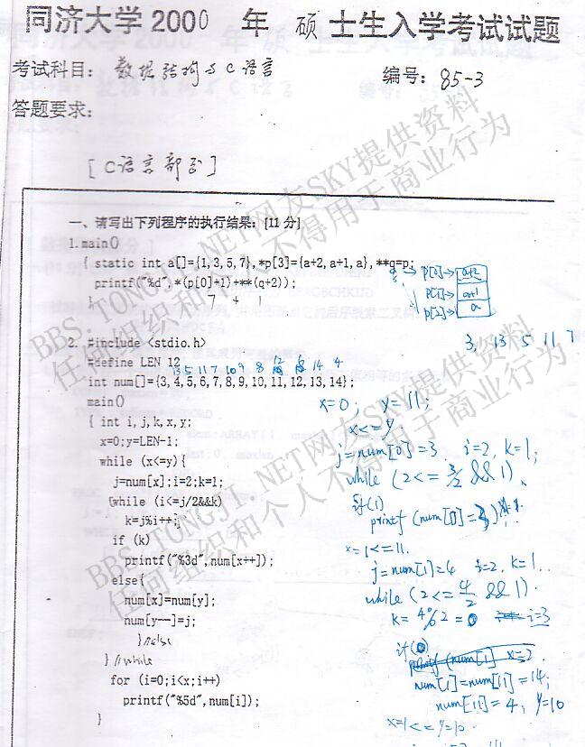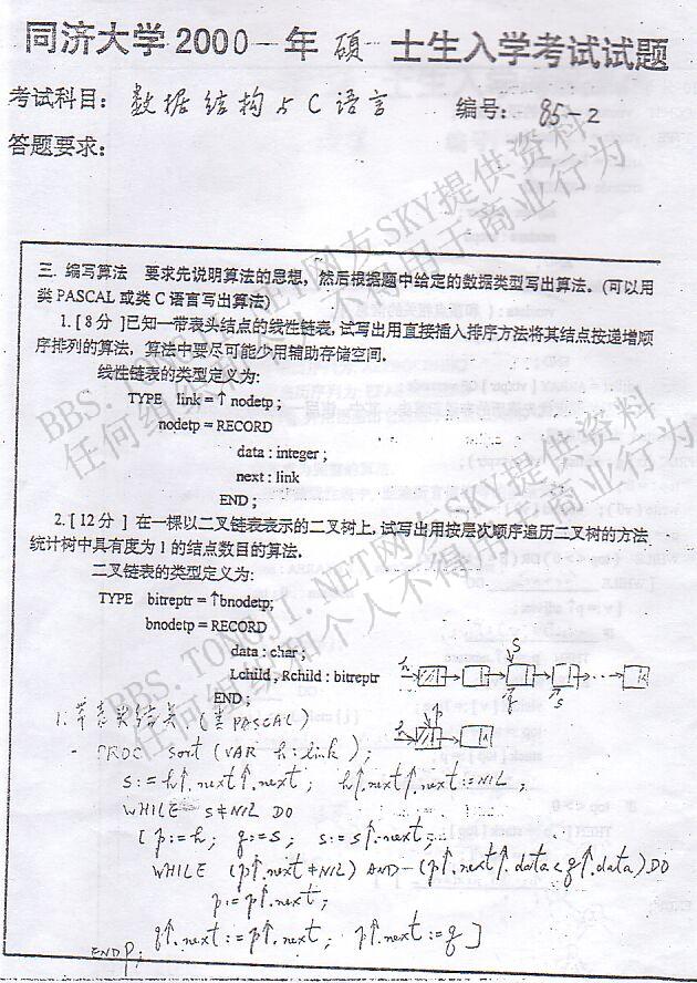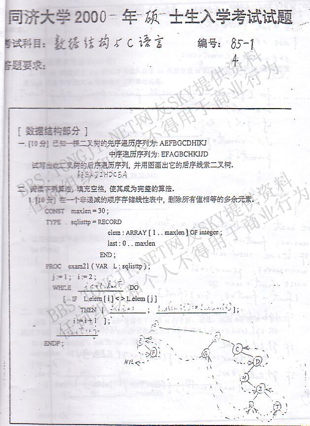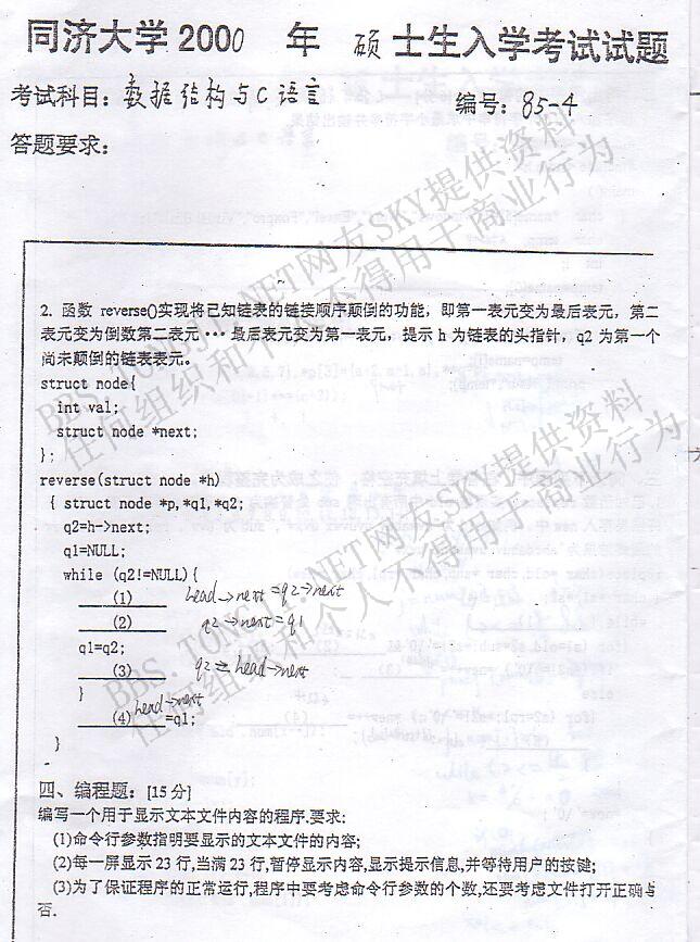 专业课考研经验 本站小编 FreeKaoyan 2018-01-22同济大学1999年考研真题-数据结构与c语言