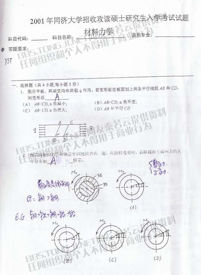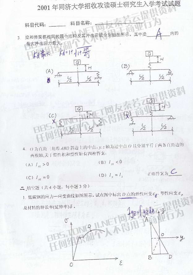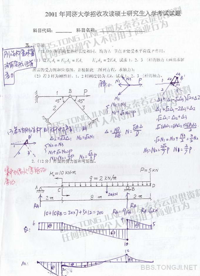 专业课考研经验 本站小编 FreeKaoyan 2018-01-22同济大学2001年考研真题-结构力学