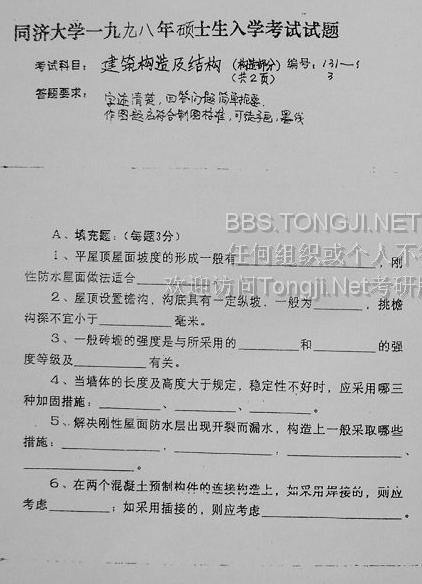 同济大学1998年考研真题-建筑构造和结构