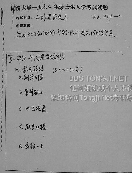 专业课考研经验 本站小编 FreeKaoyan 2018-01-22同济大学1998年考研真题-中外建筑史