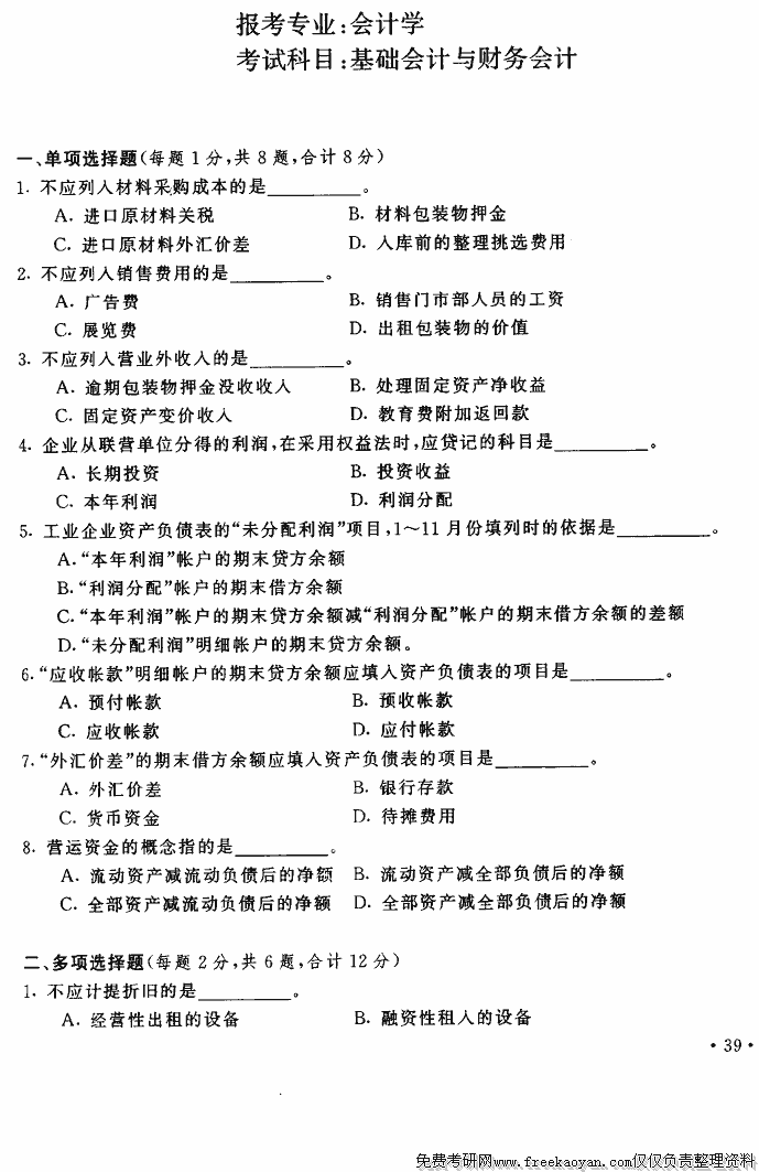 相关话题/基础 考研真题 上海财经大学 会计 财务会计