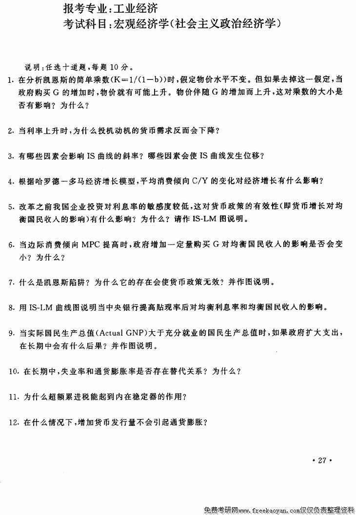 相关话题/考研真题 上海财经大学 政治经济学 宏观经济学