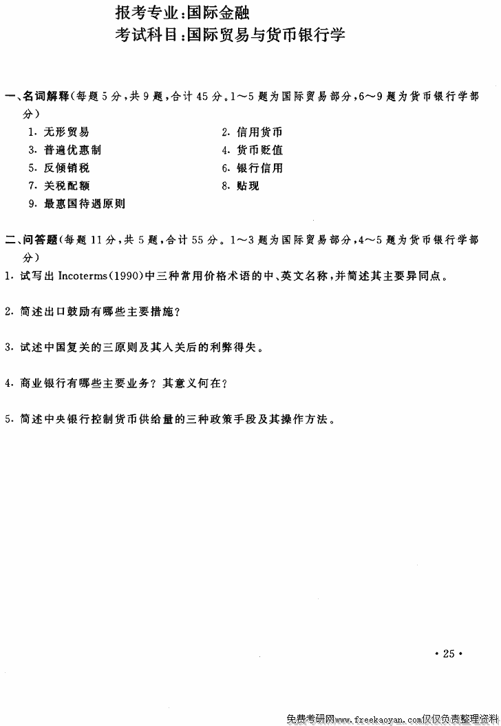 相关话题/国际贸易 考研真题 上海财经大学 银行学 货币