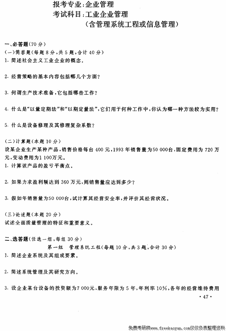 相关话题/企业管理 工业 考研真题 上海财经大学 管理