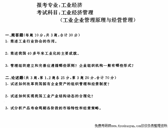 相关话题/工业 经济管理 考研真题 上海财经大学 企业管理