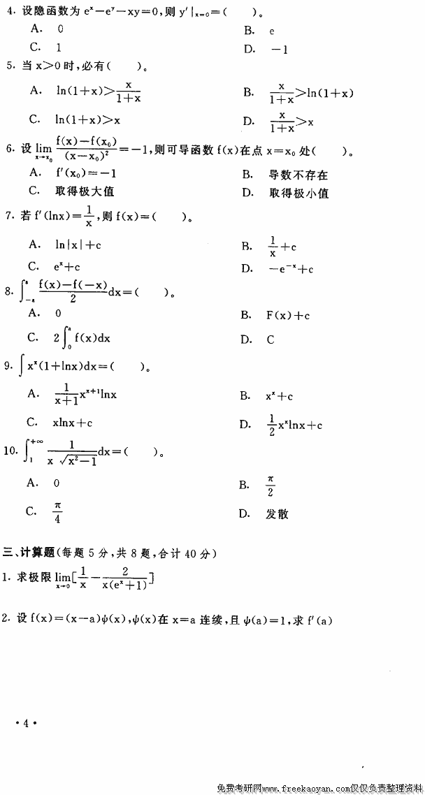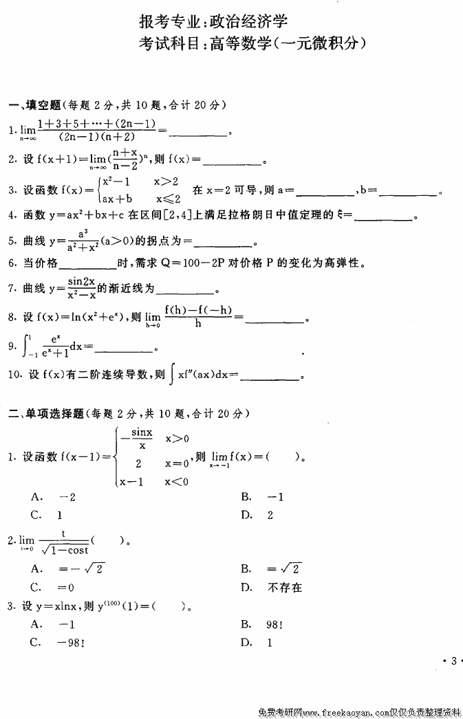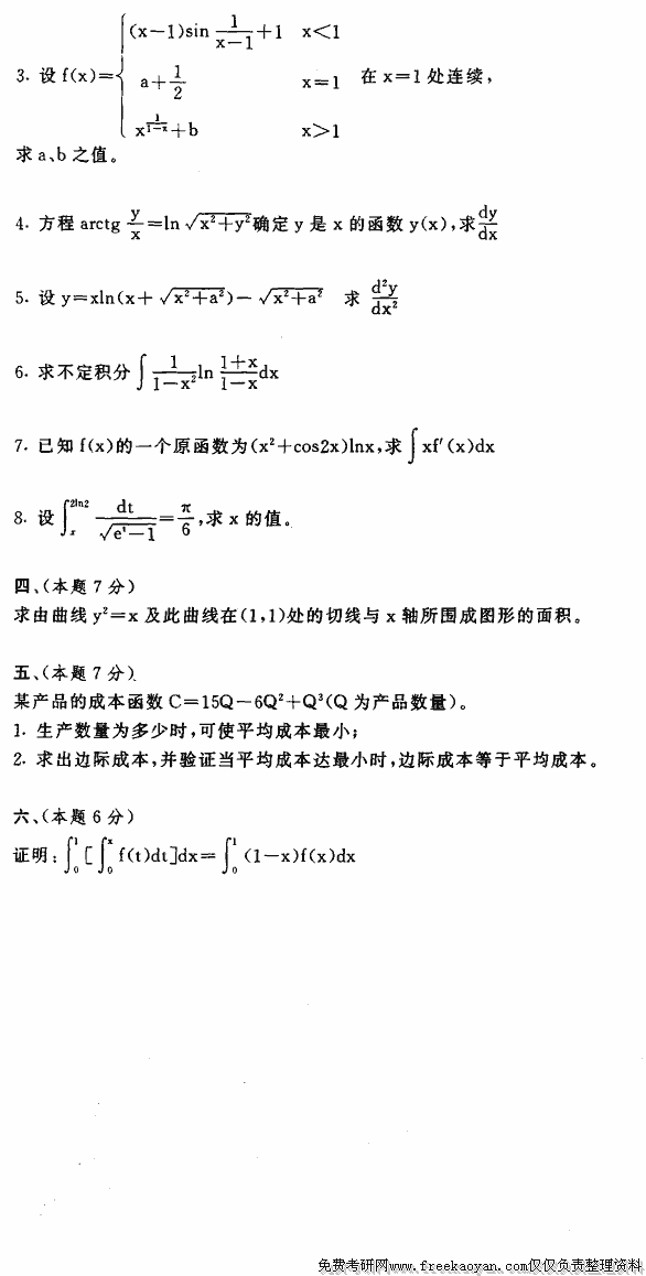 相关话题/考研真题 高等数学 上海财经大学 微积分
