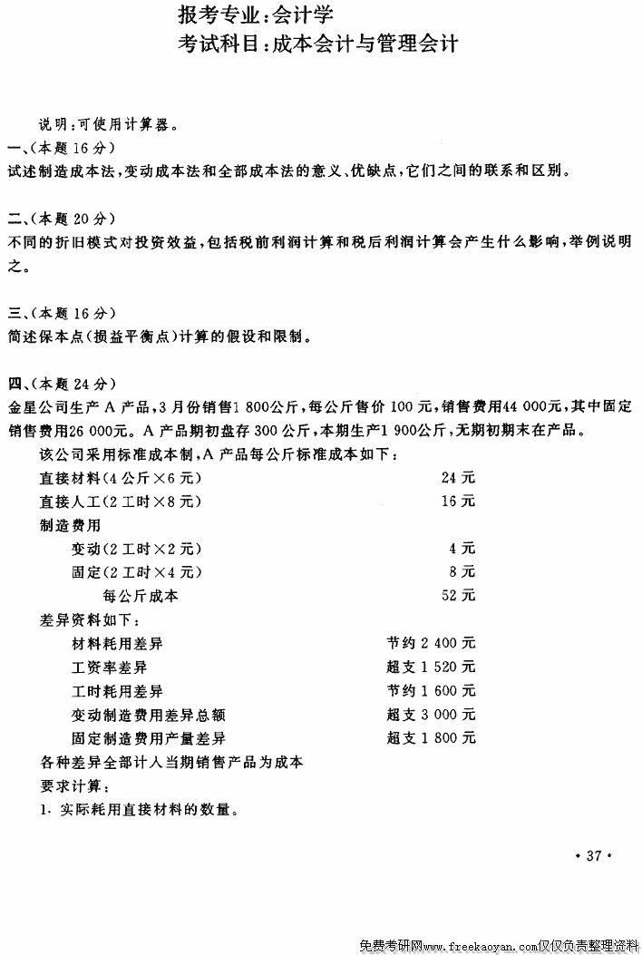 专业课考研经验 本站小编 FreeKaoyan 2018-01-22上海财经大学1994年考研真题-基础会计与财务会计