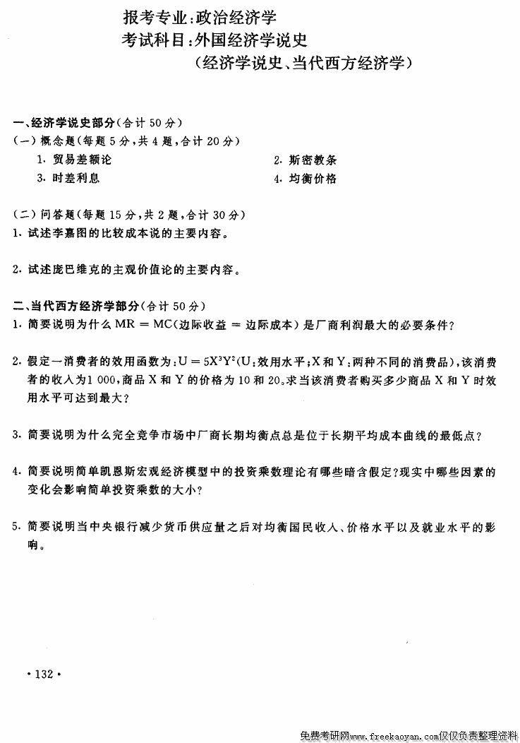 专业课考研经验 本站小编 FreeKaoyan 2018-01-22一,名词解释( 10*2 ): 1 、格雷欣法则 2 、费雪效应 3 、透支 4 、流动性 5 、有效汇率 6 、黄金的非货币化 7 、偿债率 8 、可转换债券 9 、无风险利率 10 、有效组合 二,论述题( 4*20 ): 1 、引起通货紧缩的原因是什么?通货紧缩对经济运行有何影响?应当 ...