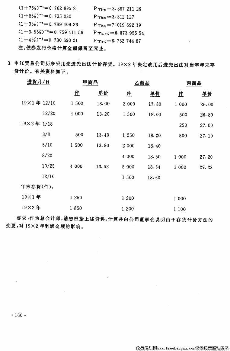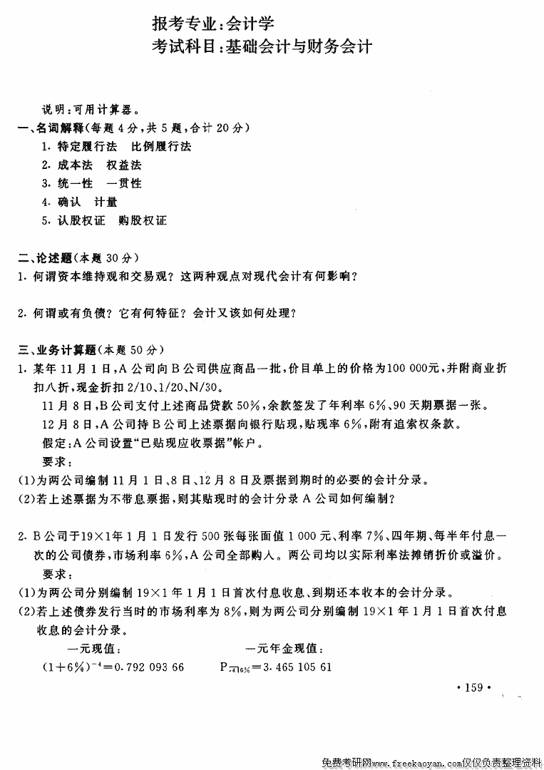 专业课考研经验 本站小编 FreeKaoyan 2018-01-22上海财经大学2002年会计试题 一、简答题(每题8分,共计24分) 1、从会计作为一个信息系统的角度来说明财务会计、成本会计以及管理会计的区别。 2、分析变动成本法和完全成本法对利润的影响以及其中变化的规律。 3、企业管理中使用的投资利润率(ROI)和剩余收益(SI)的利弊。 二、简述题(每题15分 ...