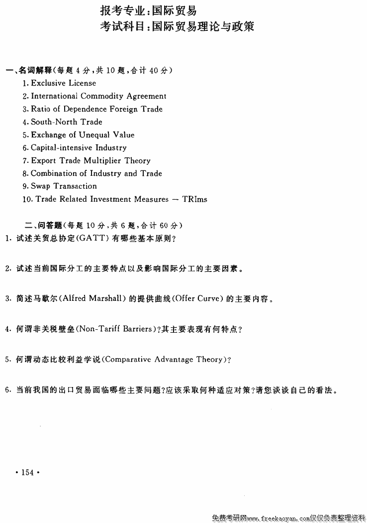 专业课考研经验 本站小编 FreeKaoyan 2018-01-22一,名词解释( 10*2 ): 1 、格雷欣法则 2 、费雪效应 3 、透支 4 、流动性 5 、有效汇率 6 、黄金的非货币化 7 、偿债率 8 、可转换债券 9 、无风险利率 10 、有效组合 二,论述题( 4*20 ): 1 、引起通货紧缩的原因是什么?通货紧缩对经济运行有何影响?应当 ...