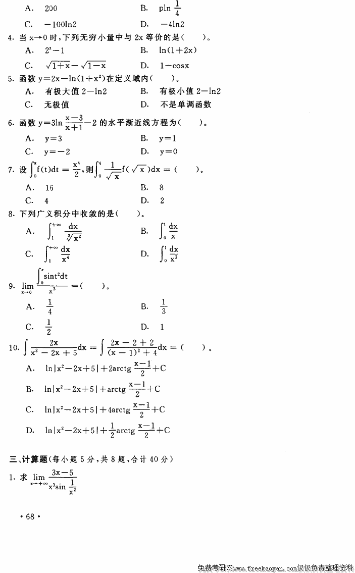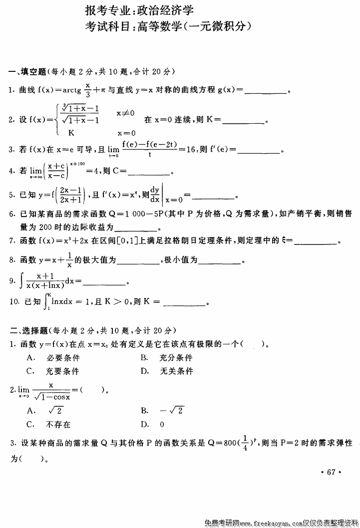 专业课考研经验 本站小编 FreeKaoyan 2018-01-22一,名词解释( 10*2 ): 1 、格雷欣法则 2 、费雪效应 3 、透支 4 、流动性 5 、有效汇率 6 、黄金的非货币化 7 、偿债率 8 、可转换债券 9 、无风险利率 10 、有效组合 二,论述题( 4*20 ): 1 、引起通货紧缩的原因是什么?通货紧缩对经济运行有何影响?应当 ...