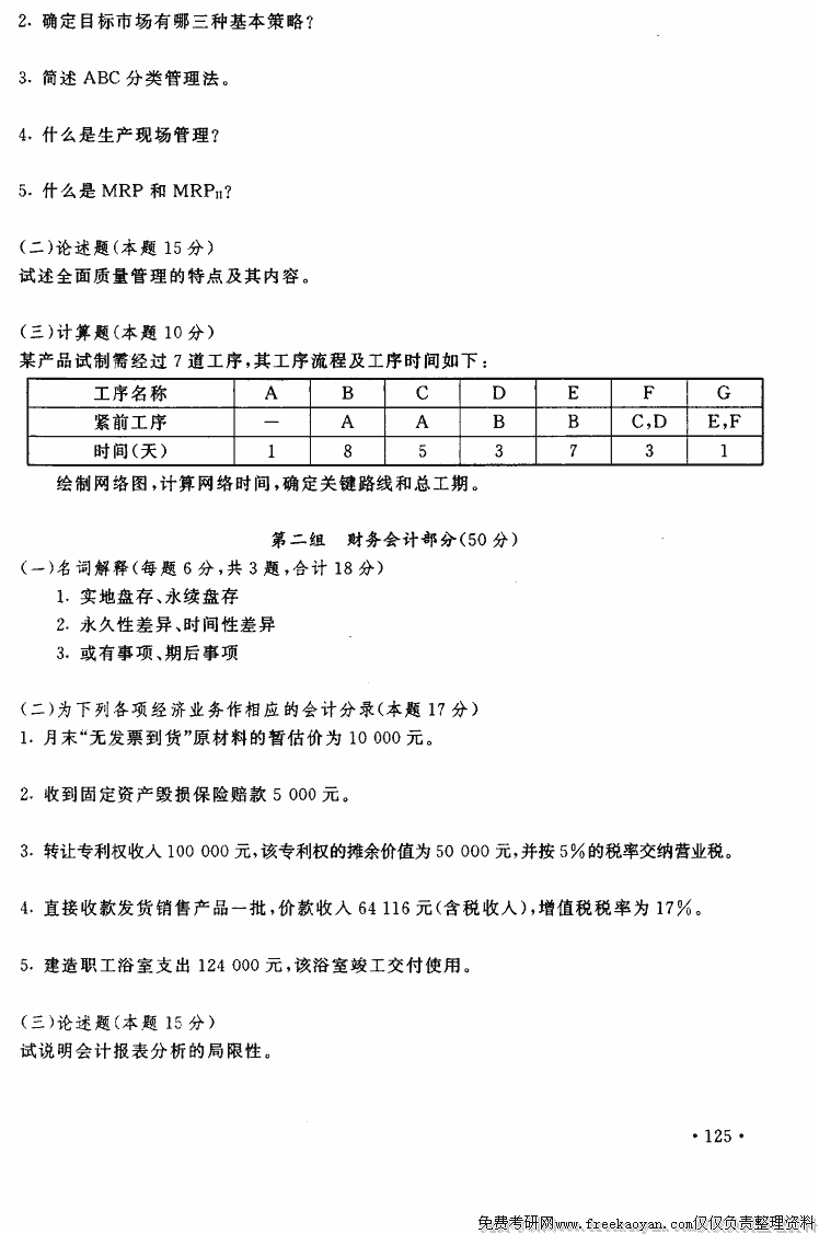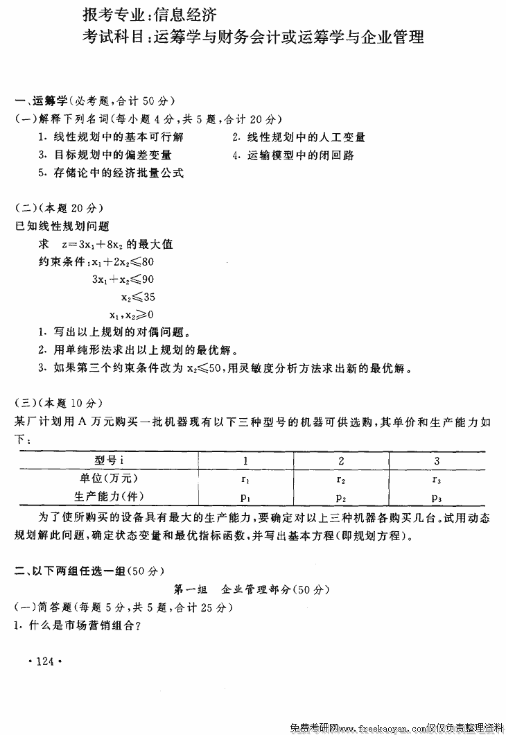 上海财经大学1995年考研真题-运筹学与财务会计或运筹学与企业管理