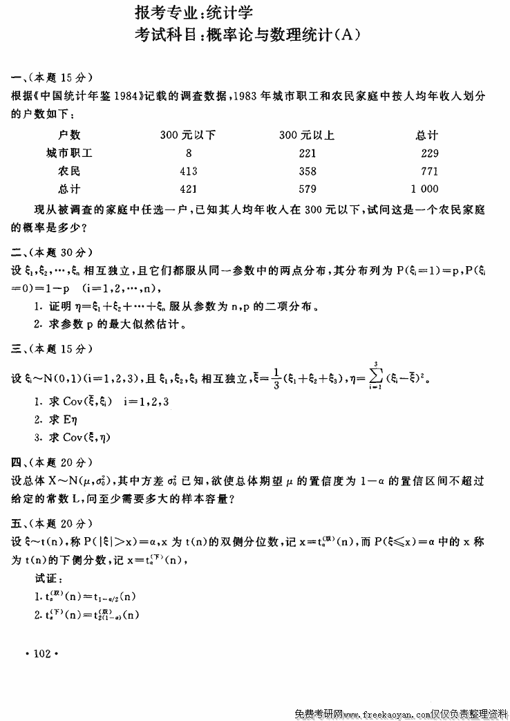 专业课考研经验 本站小编 FreeKaoyan 2018-01-22上海财经大学1995年考研真题-概率论与数理统计B