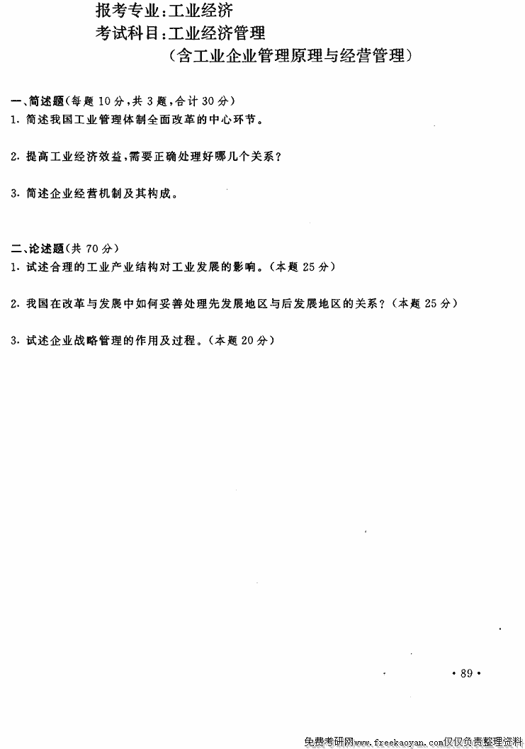 相关话题/工业 经济管理 考研真题 上海财经大学 企业管理