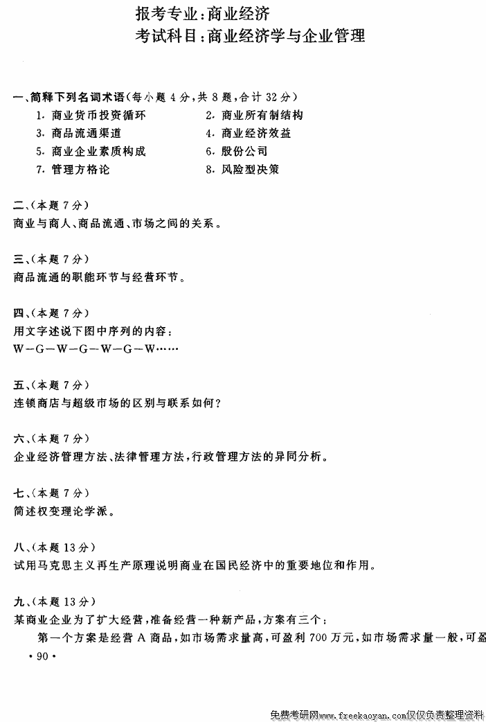 相关话题/上海财经大学 考研真题 企业管理 经济学 商业