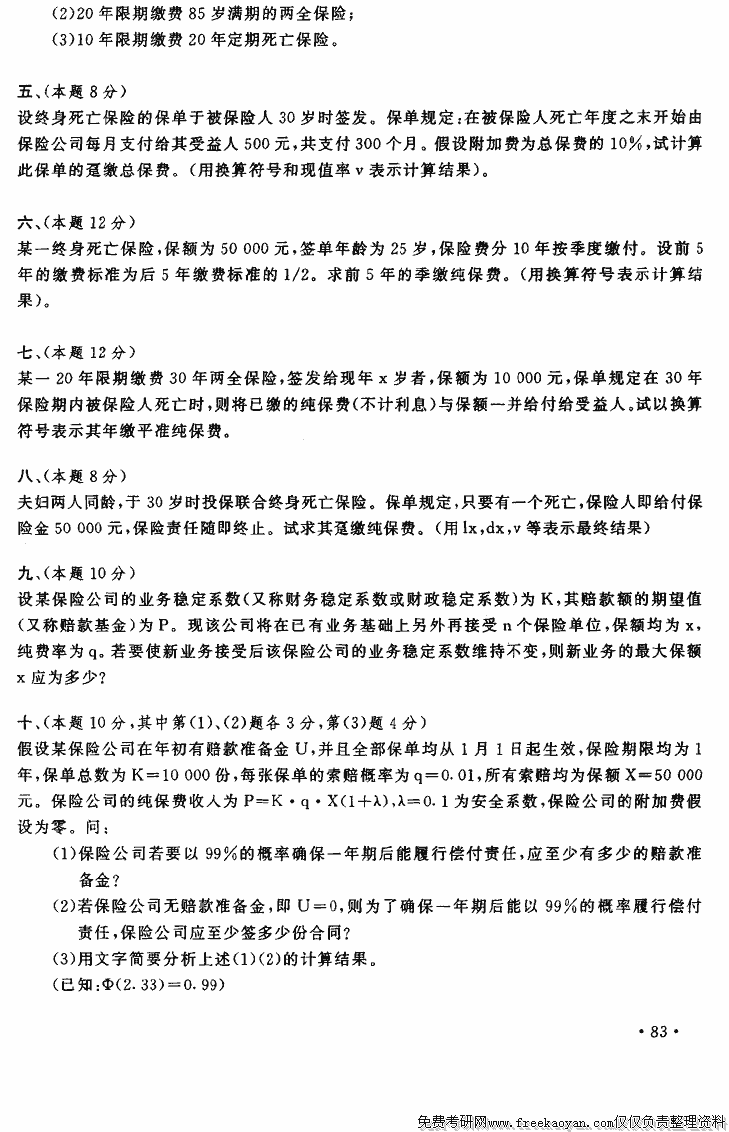 相关话题/考研真题 上海财经大学 数学 保险