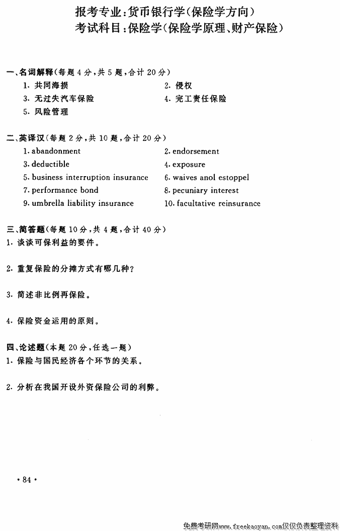 相关话题/考研真题 上海财经大学 保险学 财产保险 原理
