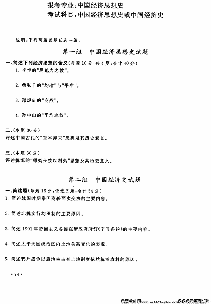 相关话题/上海财经大学 考研真题 经济史 中国经济 思想史