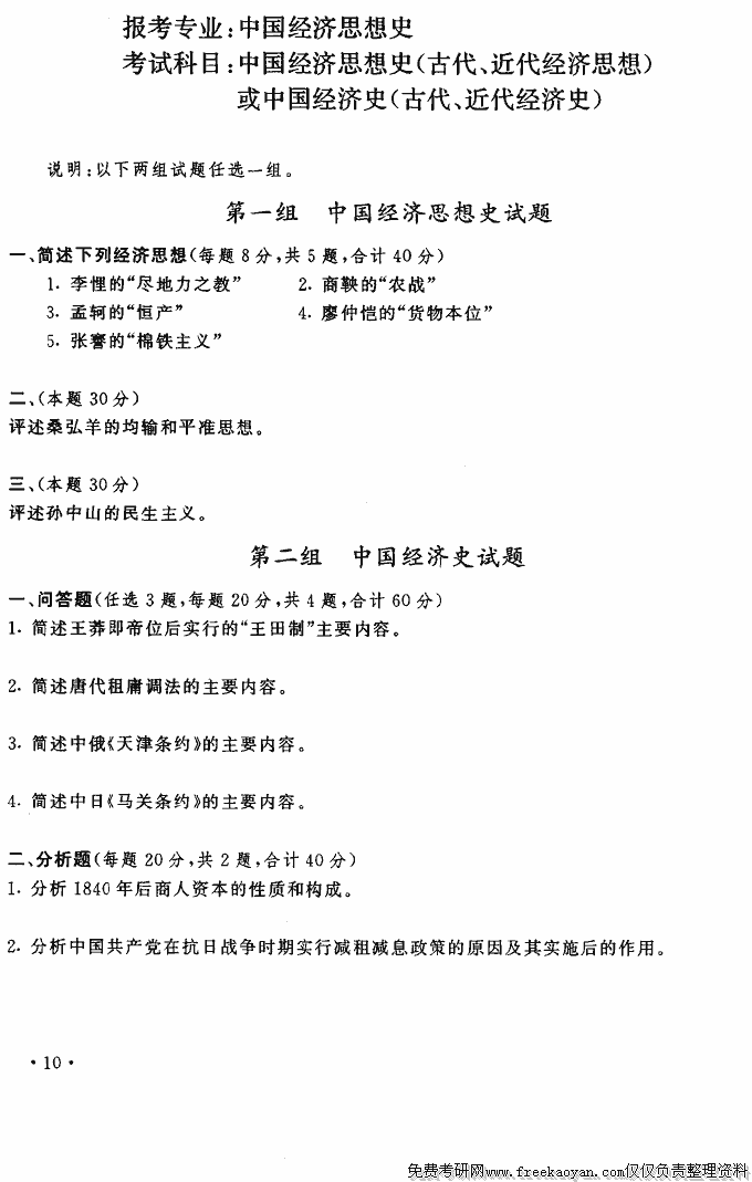 相关话题/考研真题 上海财经大学 思想史 中国经济