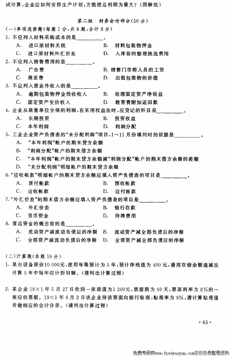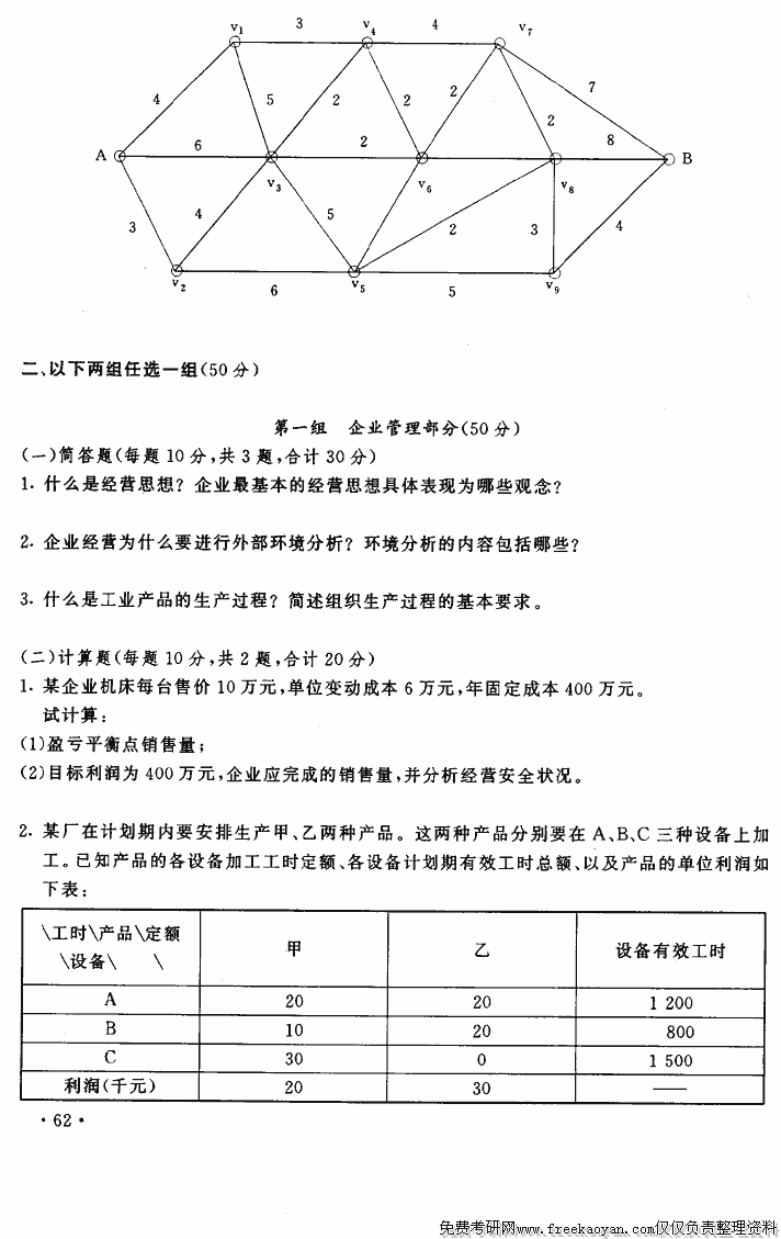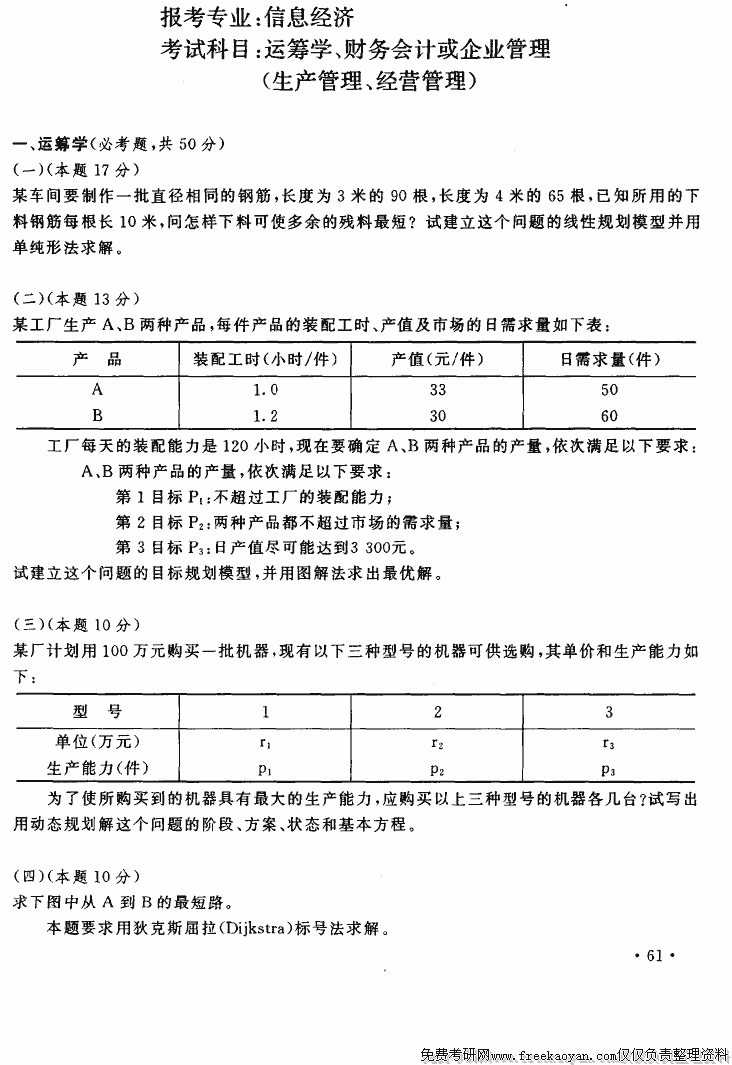 上海财经大学1994年考研真题-运筹学、财务会计或企业管理(生产管理、经营管理)