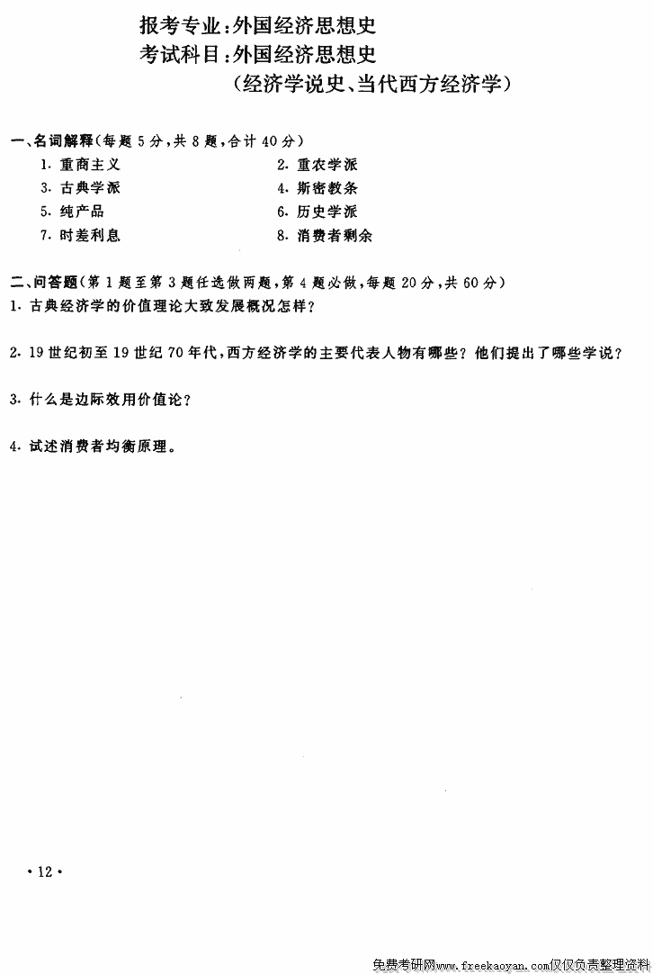 相关话题/经济思想史 考研真题 西方经济学 上海财经大学 经济