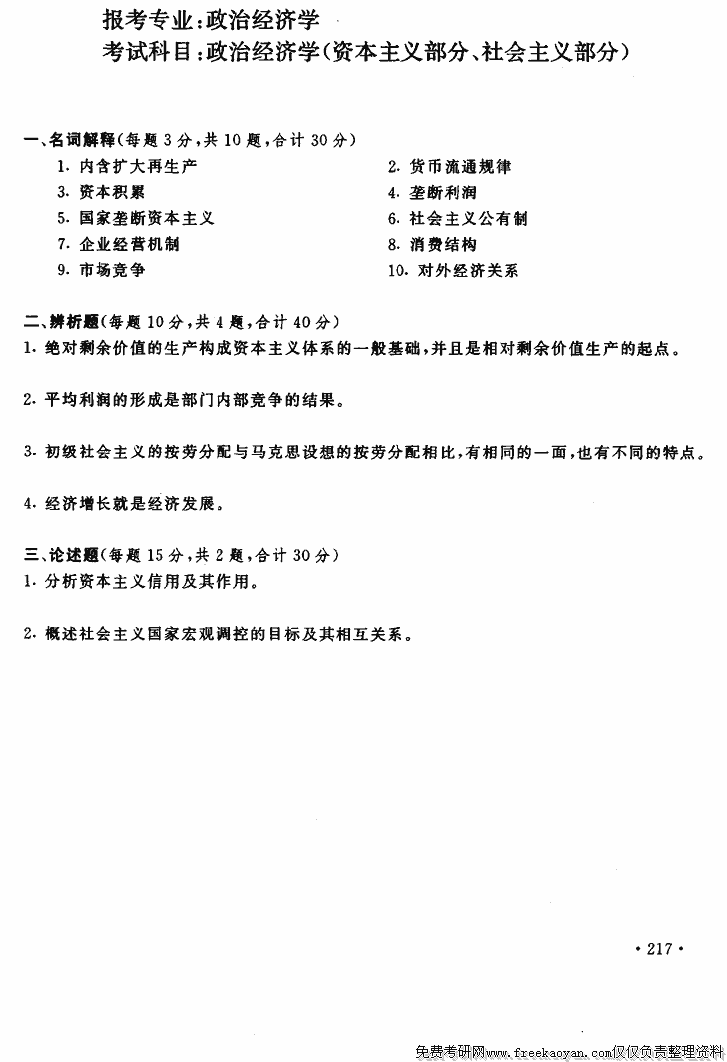 专业课考研经验 本站小编 FreeKaoyan 2018-01-22上海财经大学1997年考研真题-政治经济学A