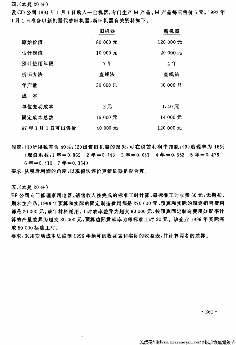 专业课考研经验 本站小编 FreeKaoyan 2018-01-22上海财经大学1997年考研真题-施工企业会计与财务或国际投资