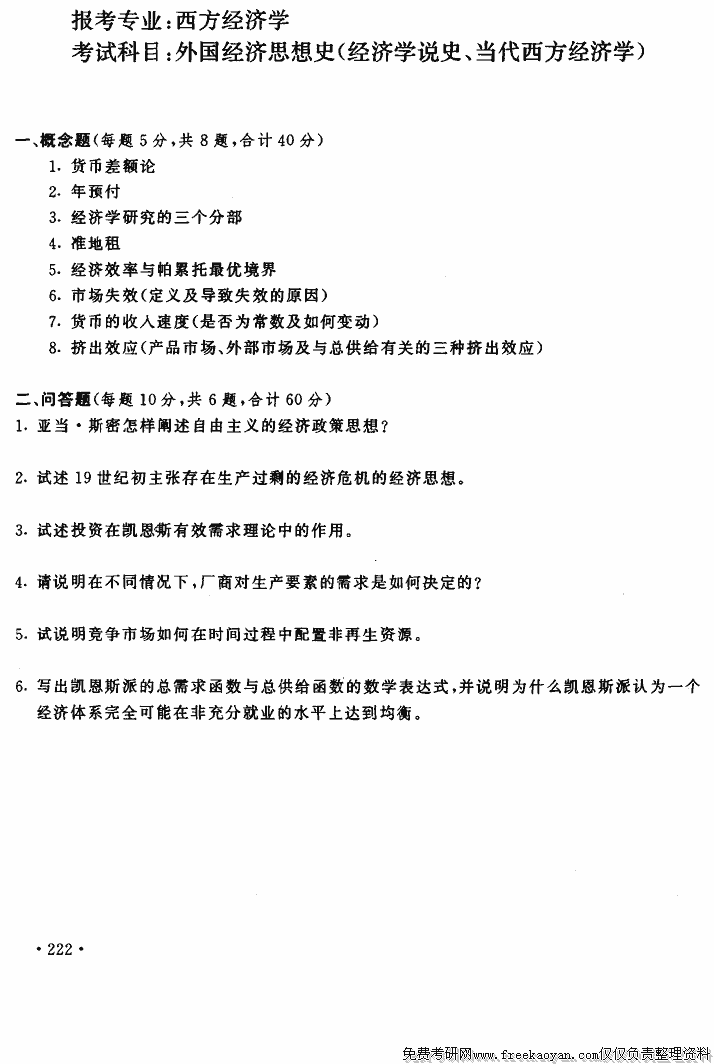 相关话题/经济思想史 考研真题 上海财经大学 西方经济学 经济