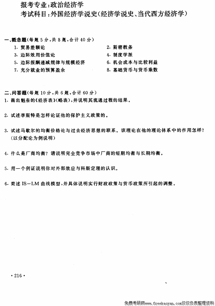 相关话题/经济 上海财经大学 考研真题 西方经济学 学说