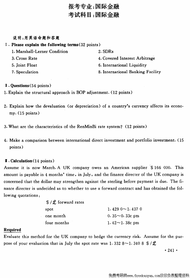 专业课考研经验 本站小编 FreeKaoyan 2018-01-22上海财经大学1997年考研真题-施工企业会计与财务或国际投资