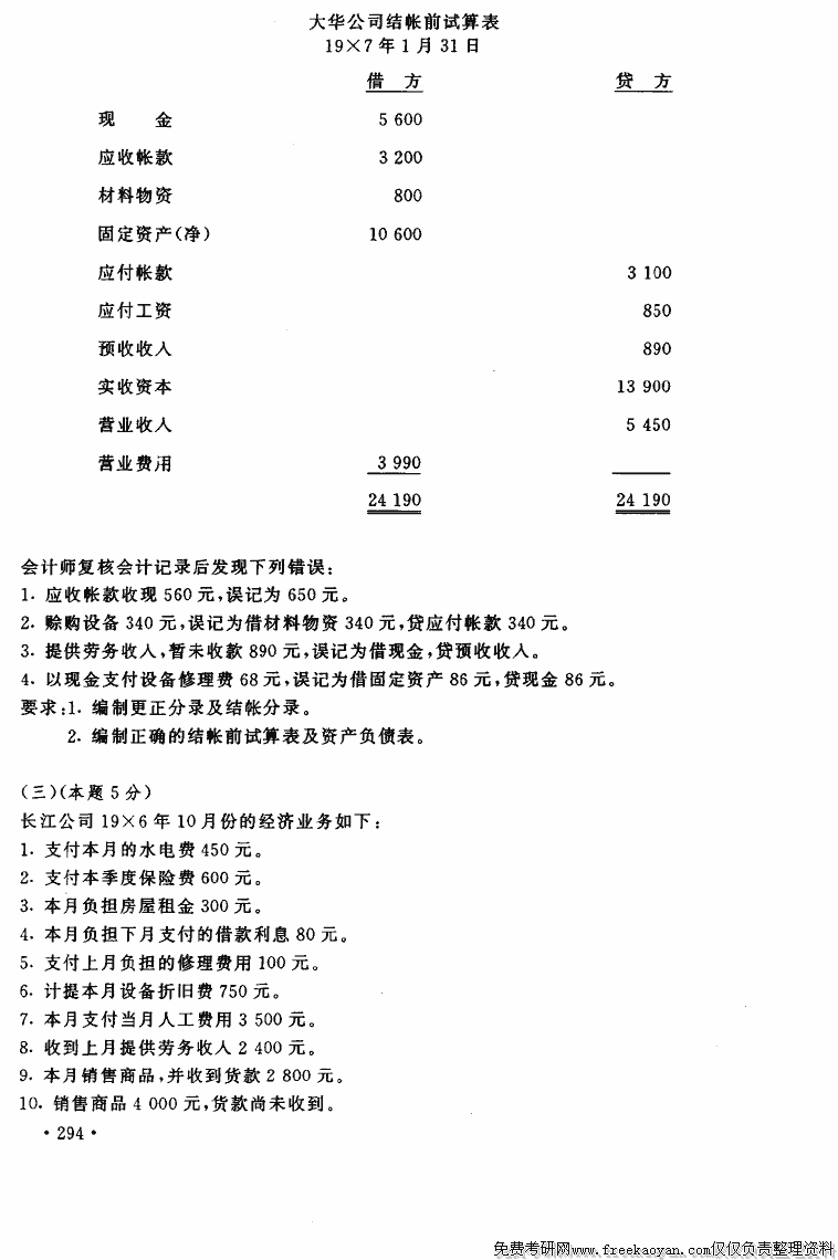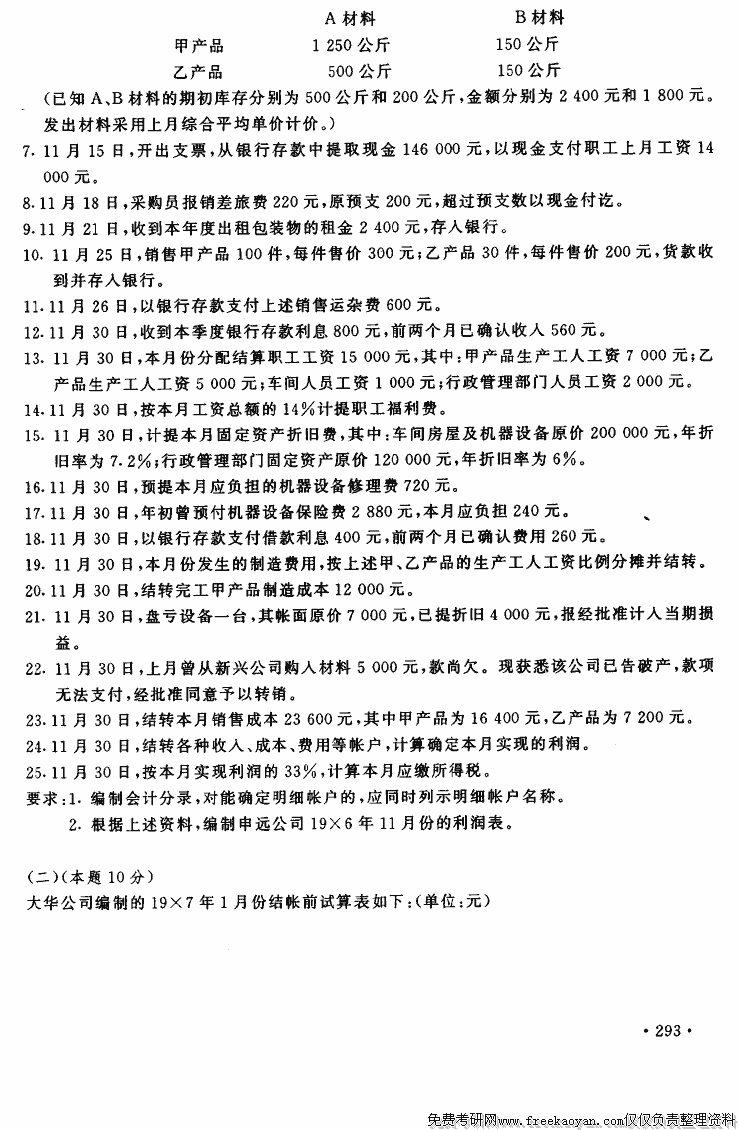 专业课考研经验 本站小编 FreeKaoyan 2018-01-22上海财经大学1997年考研真题-基础会计与财务会计