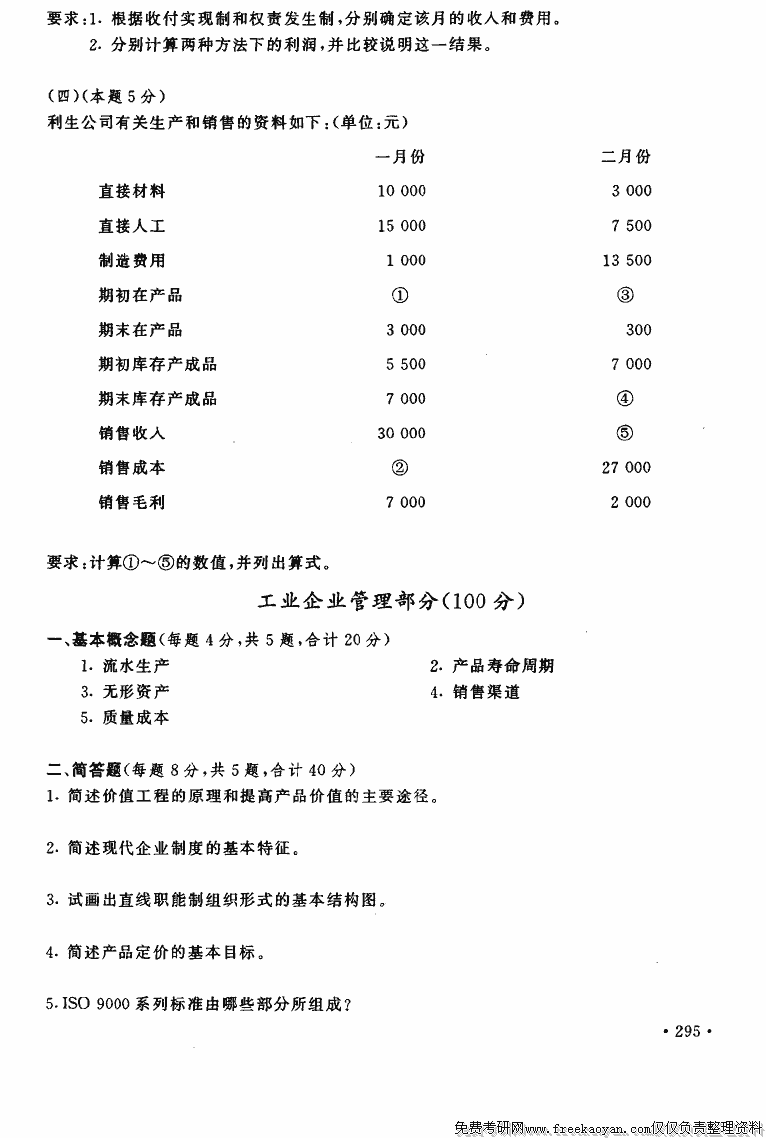 相关话题/考研真题 上海财经大学 会计学 企业管理 工业