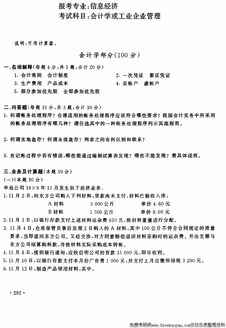 上海财经大学1997年考研真题-会计学或工业企业管理