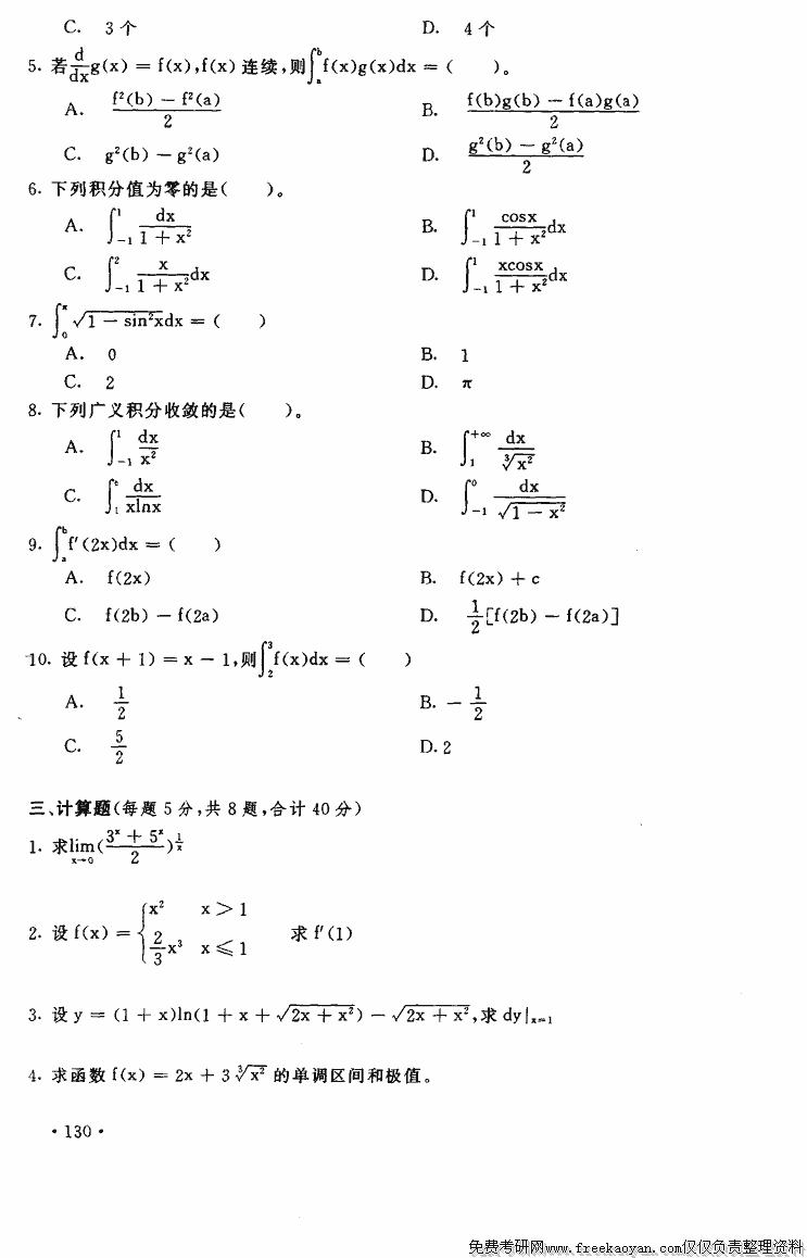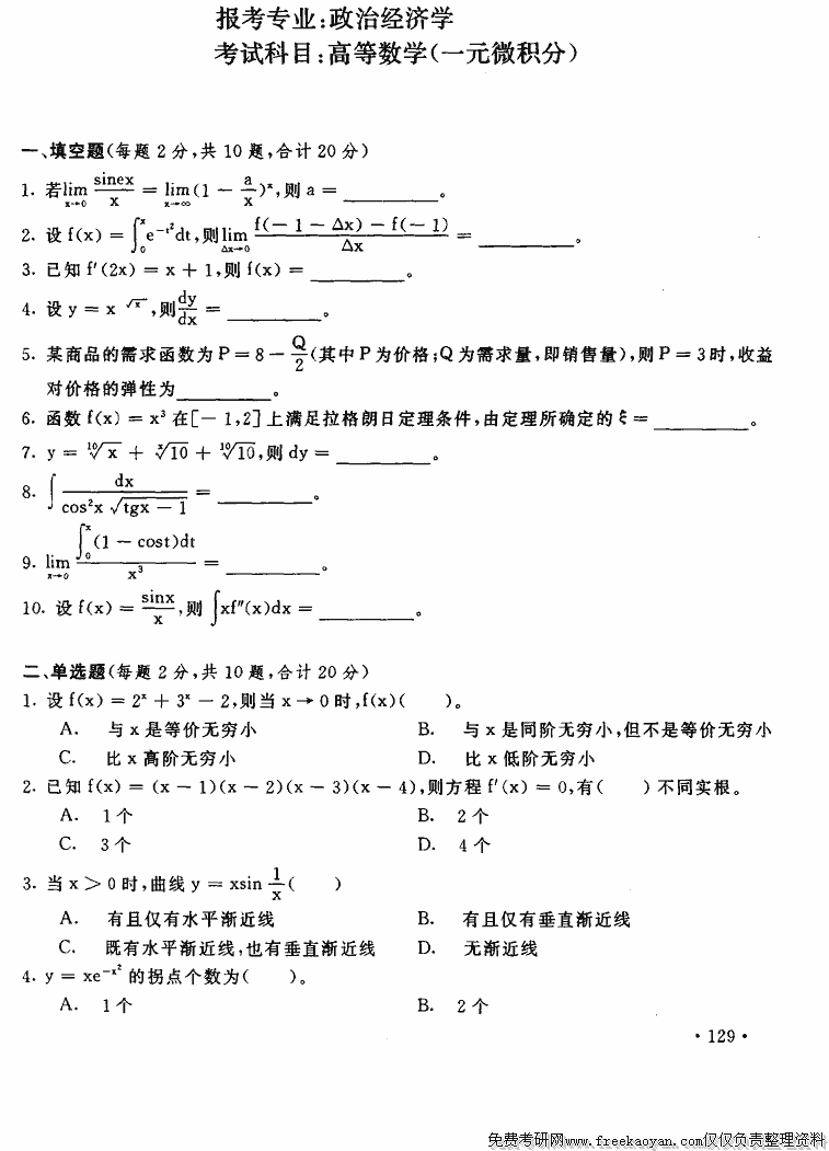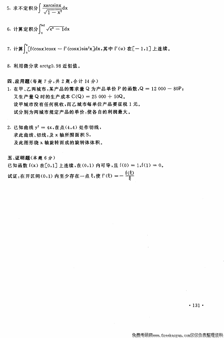 相关话题/考研真题 高等数学 上海财经大学 微积分