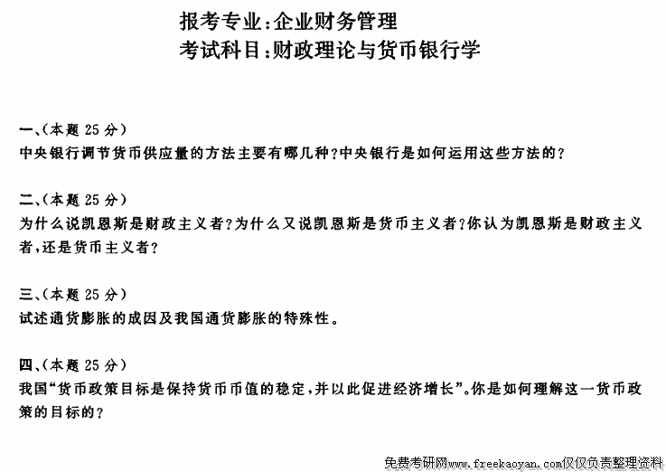 专业课考研经验 本站小编 FreeKaoyan 2018-01-22上海财经大学1996年考研真题-货币银行学(货币银行学原理、社会主义货币银行学)